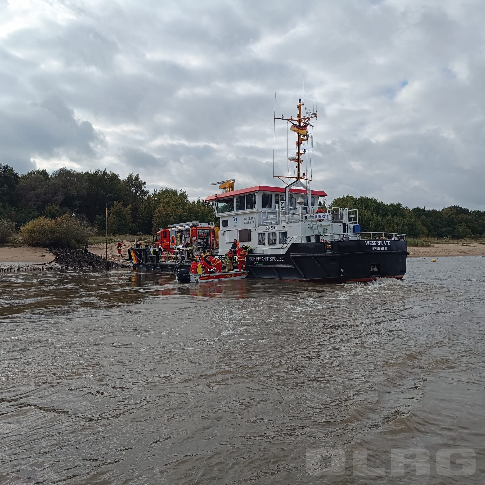 Zur Unterstützung wurden auch Kräfte der DLRG Wesermarsch durch die Feuerwehr angefordert.